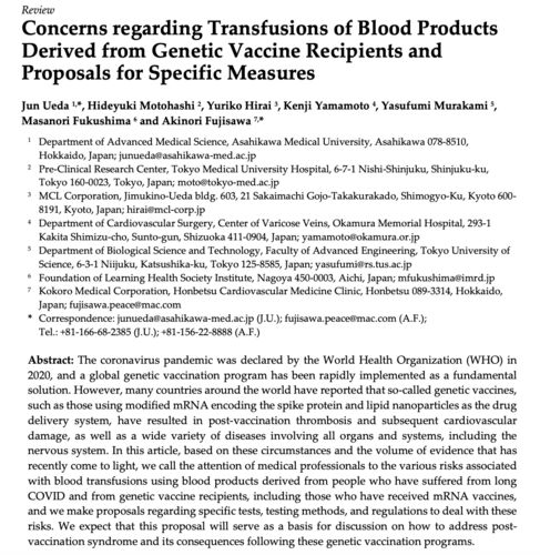 京都大学の福島医師のグループが出した論文(まだ査読されていない)が欧米で話題となっています。 題名は、「遺伝子ワクチン接種者からの輸血に関する懸念」(Concerns regarding Transfusions of Blood Products Derived from Genetic Vaccine Recipients …